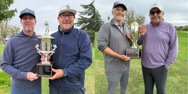 Winners of the Sacramento County Men’s 4-Ball Championship are Travis Caldwell and Christian Quint in match play. The match was even until Caldwell and Quint birdied the 16th hole to go one-up. Runners-up Patrick Cairns and Zackary Niazi birdied the 17th hole, along with Caldwell and Quint. The match was conceded on the 18th hole…